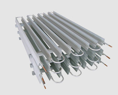 蒸發(fā)式冷凝器內(nèi)設(shè)有:噴淋水裝置、蛇形冷凝盤(pán)管、除水器